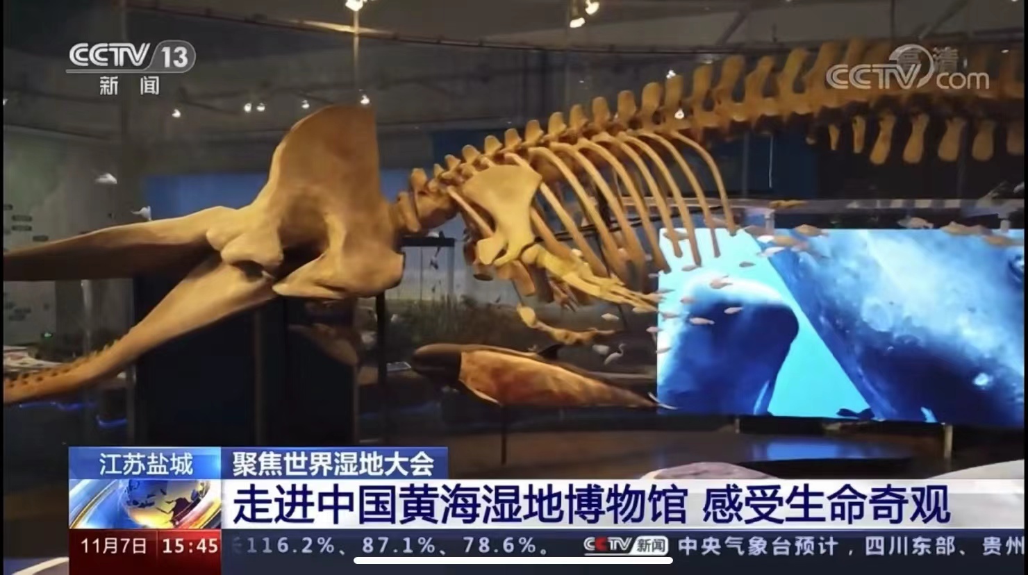 CCTV13 大連鴻峰制作的塑化抹香鯨骨骼標本成為中國黃海濕地博物館的鎮館之寶